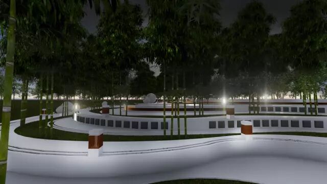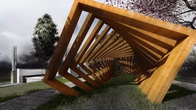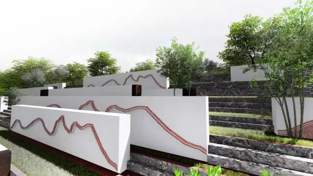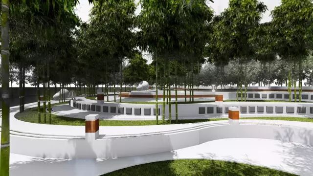 展开的长卷就像展示着人的一生,人生的画卷丰富多彩,每一个终点都值得纪念。每个竹签就是一个墓碑,竹签上记录着人的生平事迹与名字,每一个竹签下面是一个墓位。本设计大气而不失传统文化底蕴,在陵园中可作为一道独特的景观。