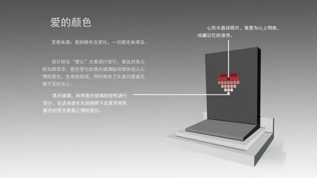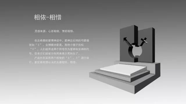 打开想象的边界,让思想自由飞翔,在殡葬作品设计过程中,加入情爱,加入科技,加入魔幻,会产生怎样的化学反应?在思想魔法的点化之下,于是,就有了以下的系列作品。我们可以看到,男女相融一体的符号;看到红心映照的墓碑,看到奔跑的蜗牛,看到轮回碑的思想之光……