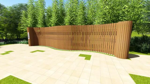 用抽象化的树叶造型做成导视牌,切合了生态葬的理念,和陵园环境融为一体。造型独特,更能吸引人的目光,因此能更好的引导人们走往正确的方向。中国人喜爱梅、兰、竹、菊四君子,用竹叶做为指示形状,寓意能像竹子一样光明、正直的走完人生的路。